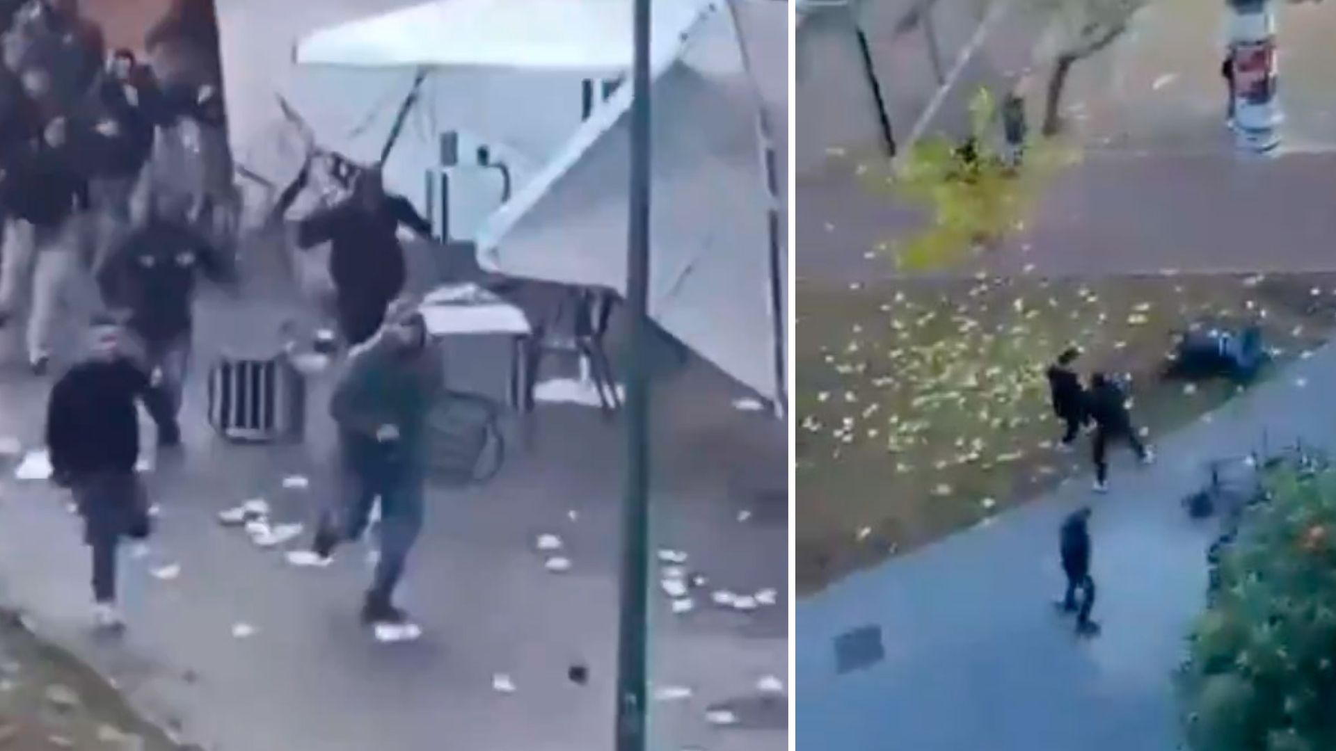 Una pelea que ha obligado a intervenir a la Policía y que se ha ubicado en la Plaza del Moreal. Al menos medio centenar de radicales se han lanzado sillas de establecimientos hosteleros del lugar y han intercambiado golpes antes de salir a la carrera.
