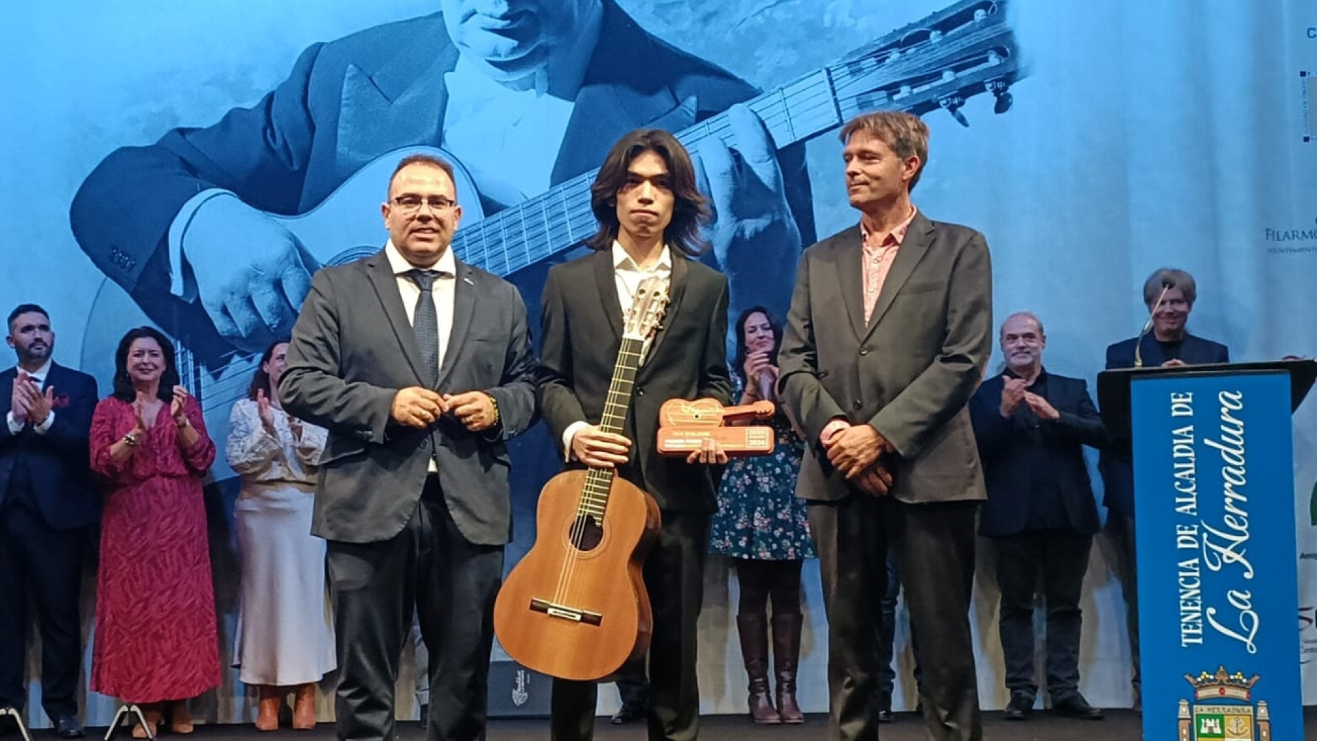 El guitarrista chino Fan Shilong, ha sido el gran triunfador del XXXIX Certamen Internacional de Guitarra Clásica “Andrés Segovia” de La Herradura, no solamente ganar el primer premio, dotado con 10.000 euros, una guitarra de concierto modelo “Maestro” edición especial “Andrés Segovia” del luthier de La Herradura, Stphen Hill, sino también el premio “Diego Martínez” dotado con una bolsa de viaje de hasta 1000 euros, para ofrecer un recital en la edición 2025 del Festival “Noches del Castillo” de La Herradura, al ser el guitarrista más valorado por el público asistente en al final. También ha conseguido el premio “Fundación Hispania Música- Concerto Málaga” dotado con un concierto en la temporada 2024/2025 de la Fundación, por la mejor interpretación de una obra de música española. Por cierto, Fan Shilong había conseguido el tercer premio en las dos últimas ediciones y buscaba con ahínco el primer premio “porque es un galardón muy importante para cualquier guitarrista y todo un orgullo haberlo conseguido”, dijo tras recibir los galardones.
