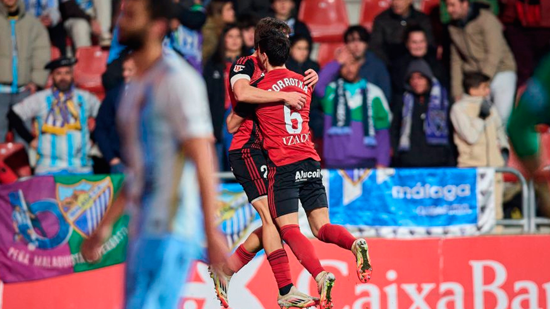 A pesar del golpe, el Mirandés no bajó los brazos y buscó rápidamente una reacción antes del descanso, intentando forzar el error del Málaga, pero el tiempo se agotó y no pudo concretar ninguna oportunidad clara.